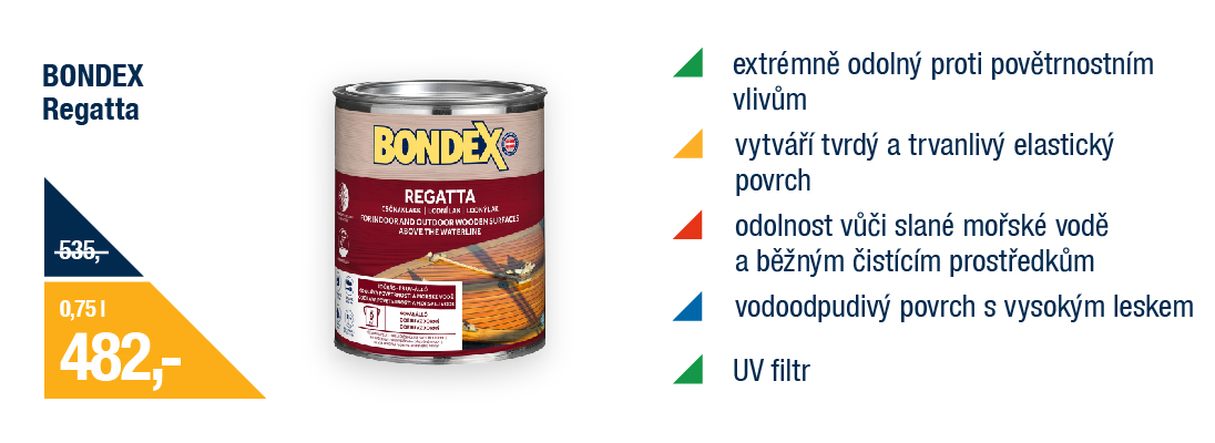 Vysoce odolný lak na dřevo, které má blízko k vodě – to je Bondex Regatta. Spojení hloubkové ochrany a povrchového štítu, které odolá i náročným podmínkám.