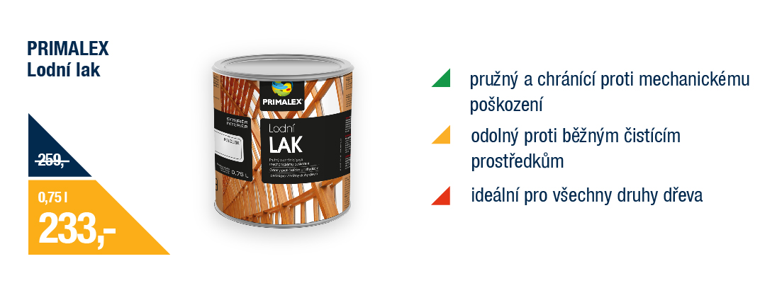 Primalex Lodní lakkdyž chcete od laku víc – ať už jde o okenní rámy nebo zahradní lavičku. Pevný, pružný a krásně lesklý.