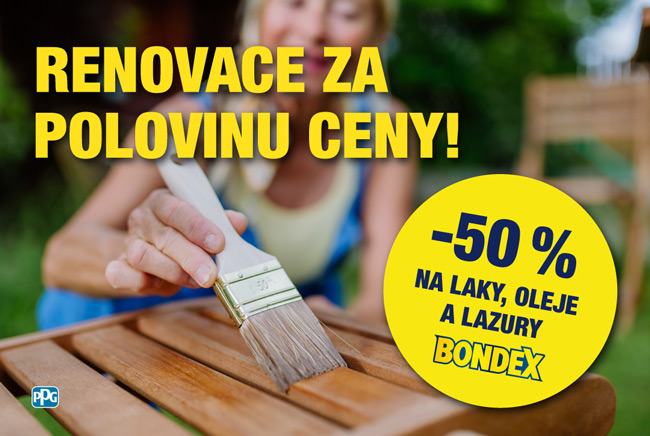 Nakupujte nyní vybrané oleje, lazury a laky značky BONDEX s 50% slevou.