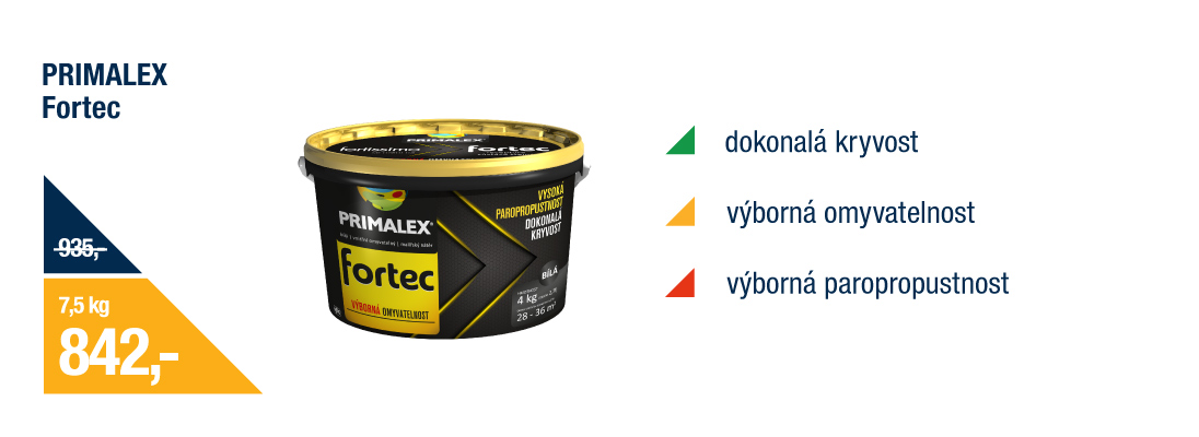 Pro náročné povrchy a místa, které jsou příležitostně vystavovány vlhkosti, je vhodný Primalex Fortec.