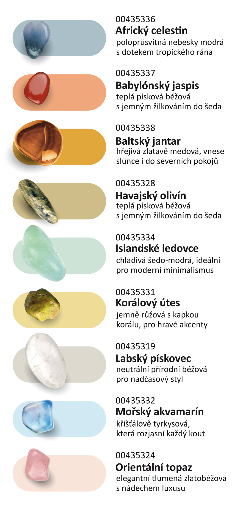 00435332 | Mořský akvamarín | křišťálově tyrkysová, která rozjasní každý kout | |