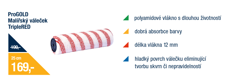 ProGold váleček TripleRed PG 2012 je prémiový polyamid tkaný z nekonečného vlákna, který je vhodný na interiérové a disperzní barvy.