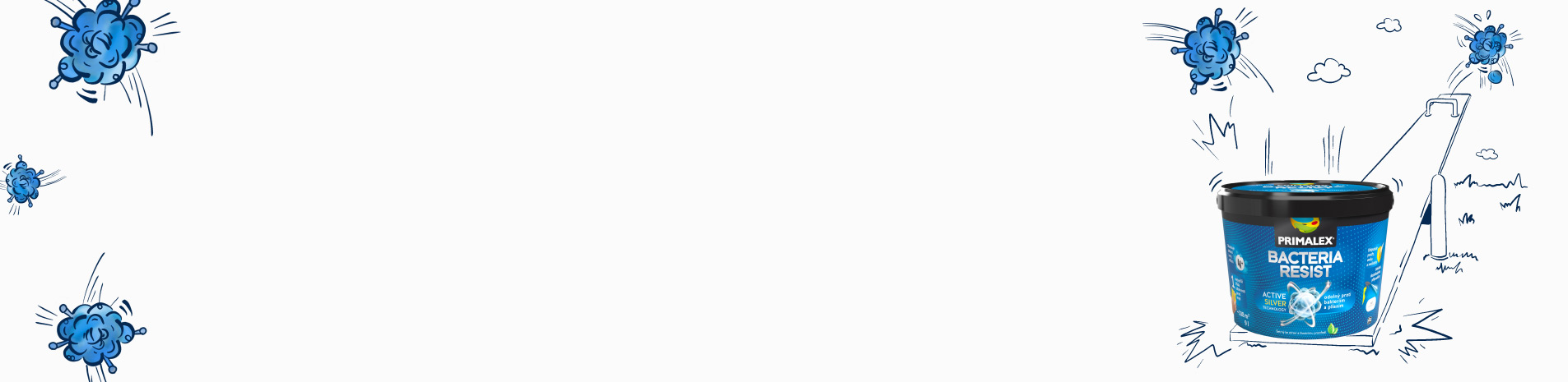 Primalex Bacteria Resist je vysoce odolný nátěr doplněný o technologii ACTIVE SILVER. Odolává bakteriím, plísním, dezinfekčním přípravkům, prachu i běžným skvrnám.