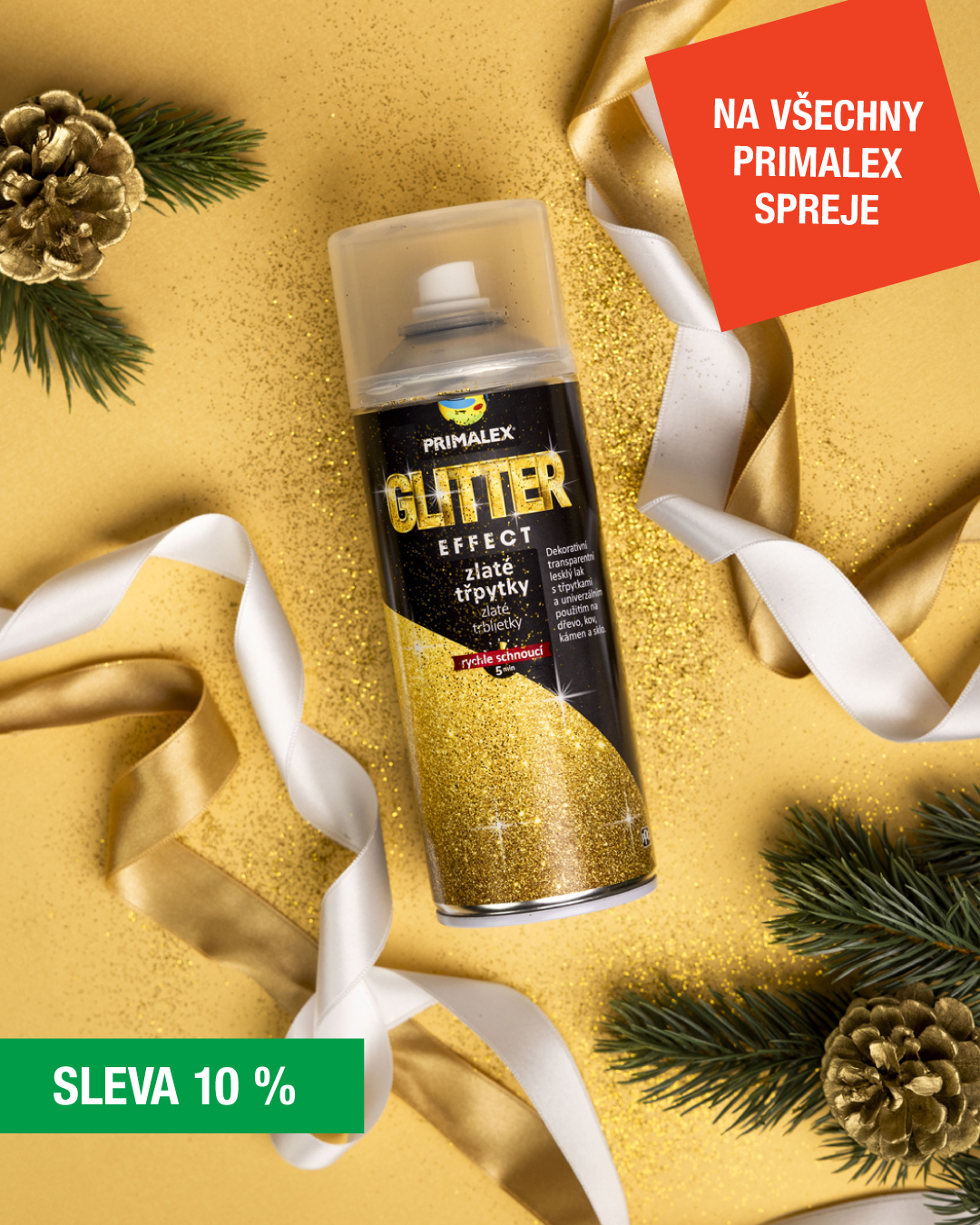 Primalex spreje navíc rychle schnou a vybírat můžete ze široké škály sprejů v různých odstínech. A my vám je nyní navíc nabízíme s 10% slevou.