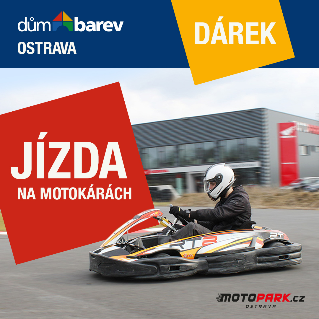 Nakupte během září na prodejně Dům barev Ostrava za 1 500 Kč a získejte k nákupu 2 dárkové poukazy na zážitkovou jízdu na motokárách v Motoparku Ostrava.
