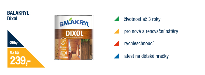 Tenkovrstvá lazura Balakryl Dixol je vhodná pro nové i renovační nátěry v exteriéru i interiéru.