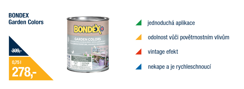 Krásné odstíny vám nabídne i Bondex Garden colors, kterými docílíte vintage efektu. Skvěle vyniknou nejen v rozkvetlé zahradě, ale i přímo u vás doma.