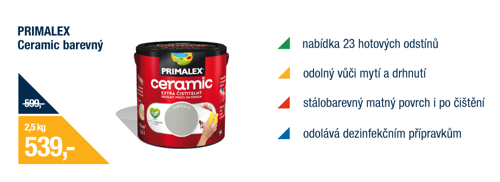 Primalex Ceramic je omyvatelná a čistitelná interiérová barva s vysokou odolností proti znečištění.