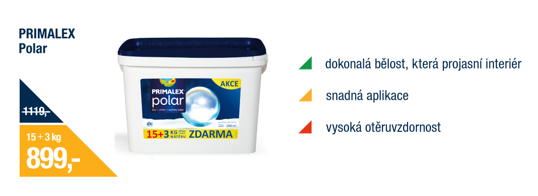 Dokonalou bělost a projasněný vzhled vašeho interiéru poskytne Primalex Polar.