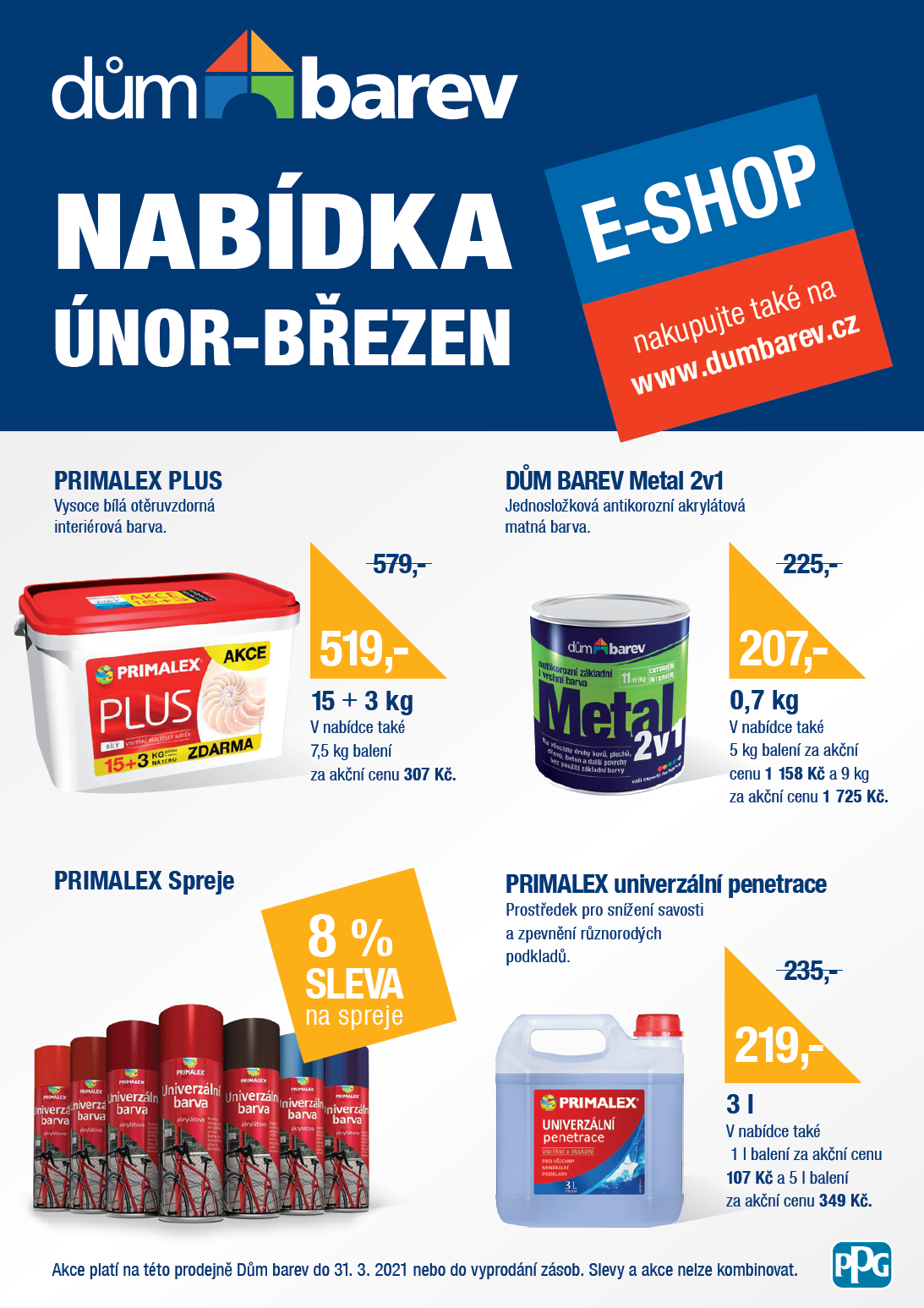 Využijte následující dva měsíce akčních cen na tyto produkty: Nakupovat můžete na e-shopu dumbarev.cz nebo ve všech kamenných prodejnách Dům barev. Kdy má vaše nejbližší prodejna otevřeno, zjistíte ZDE.