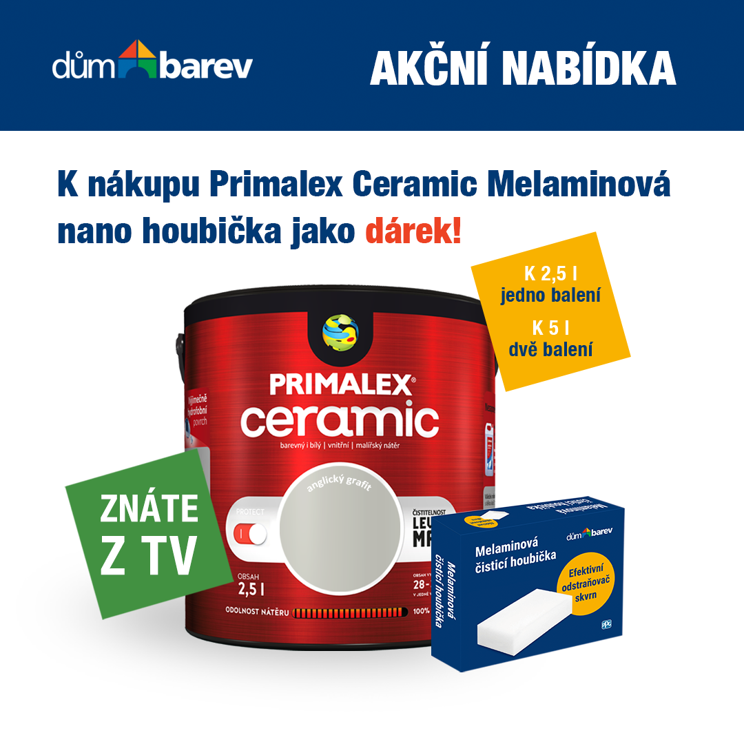 Ve všem prodejnách Dům barev i na e-shopu po celý červen dostanete čisticí melaminovou houbičku jako dárek k nákupu Primalex Ceramic!