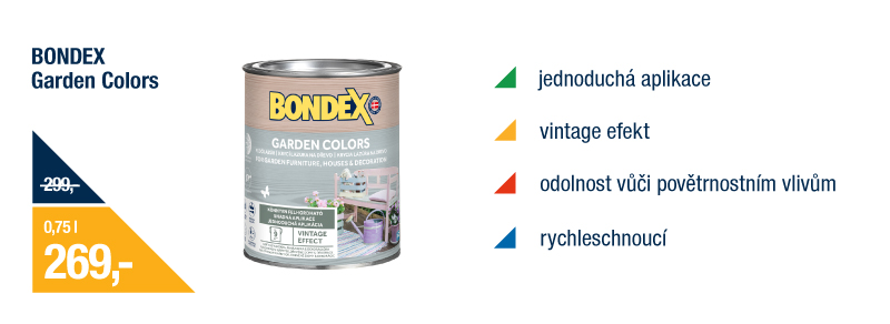 Krásné odstíny vám pak nabídne Bondex Garden colors, kterými docílíte vintage efektu. Skvěle vyniknou nejen v zelené zahradě, ale i přímo u vás doma.