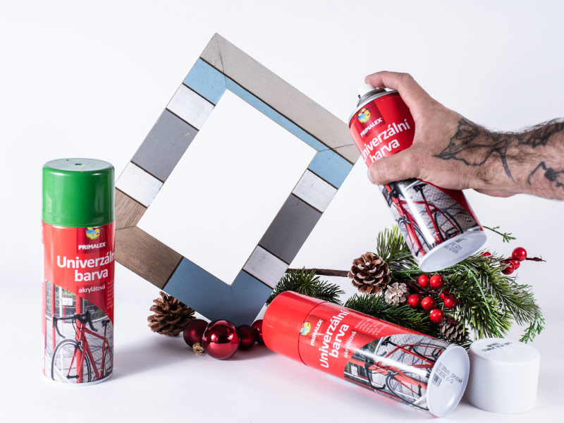 - Staré, očištěné rámečky, univerzální sprej Primalex, rukavice