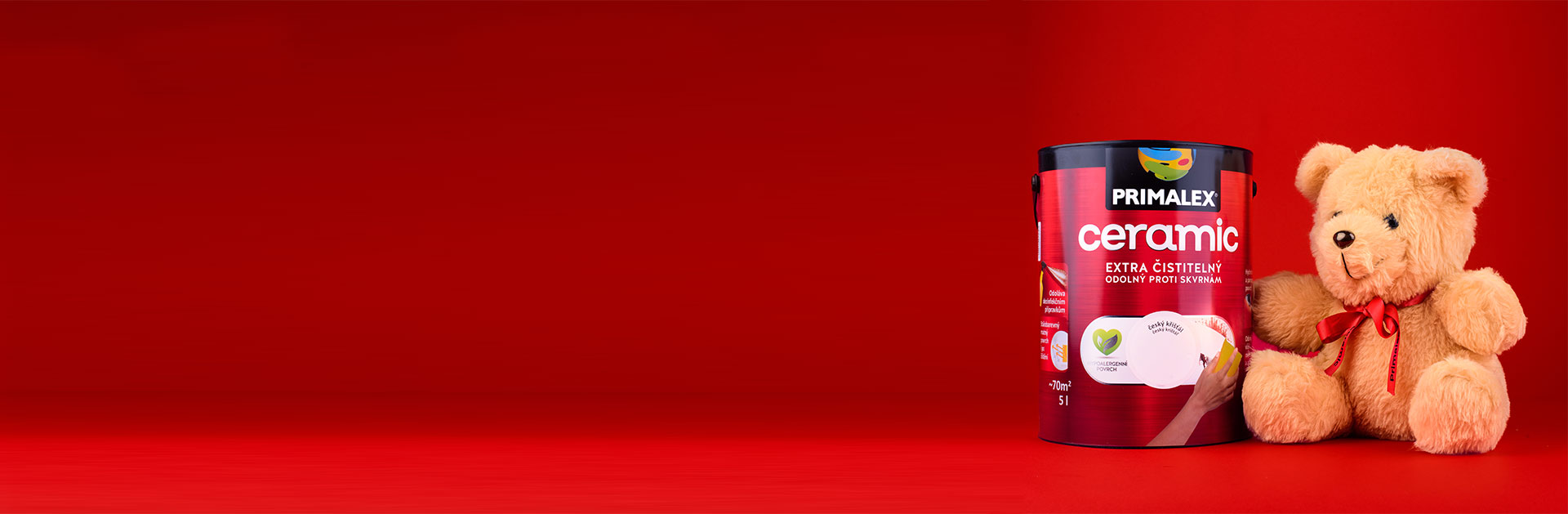 AKCE UKONČENA. Vymalovali jste dětský pokojíček a za pár dnů si vaše děti vyzdobily zdi barevnými kresbami? Nebo se váš psí miláček rád otírá o zdi? Nezoufejte! S naší omyvatelnou a otěruvzdornou barvou Primalex Ceramic stačí mokrým hadříkem „postižené“ místo jednoduše umýt. Nový Primalex Ceramic s vylepšenou recepturou je navíc ještě odolnější vůči skvrnám a extra čistitelný!
