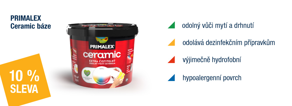 Primalex Ceramic je omyvatelná a čistitelná interiérová barva s vysokou odolností proti znečištění.
