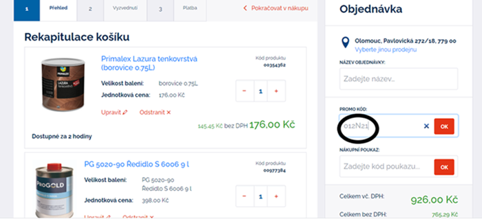 Po vložení produktu do košíku nezapomeňte zadat promo kód do vyznačené části. Stiskněte tlačítko OK a dárek se vám k nákupu automaticky připojí.