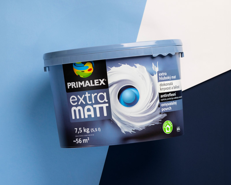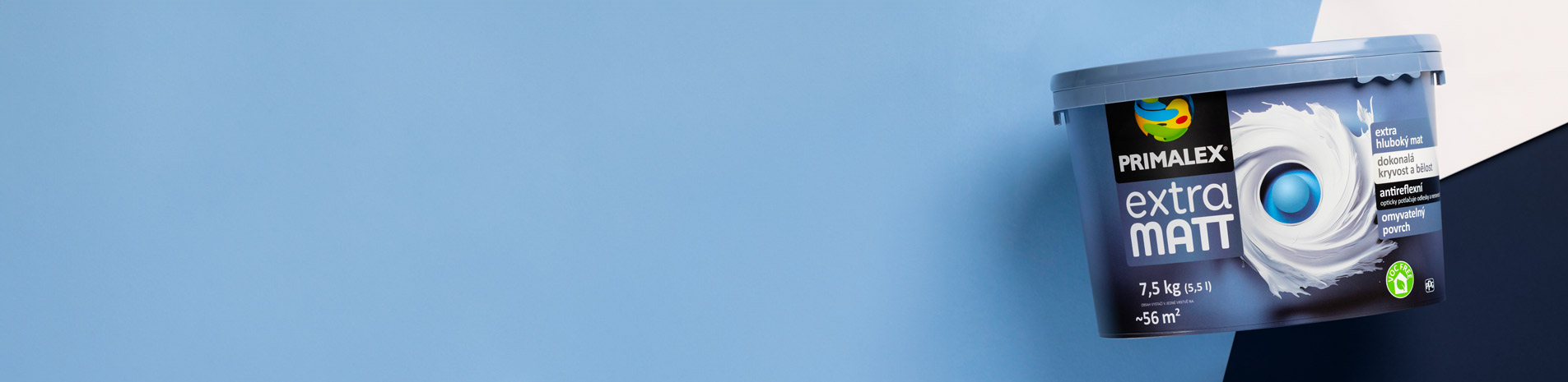 S radostí vám představujeme novou vysoce kvalitní interiérovou barvu Primalex Extra Matt. Svým sněhobílým a extra hlubokým matným vzhledem z vašeho interiéru vykouzlí oázu klidu a čistoty. Její jedinečnou výhodou je inovativní technologie ANTI-REFLEX, díky níž a díky vysoké krycí schopnosti opticky eliminuje odlesky a tím zakrývá nedokonalosti podkladu. U méně zašpiněných povrchů stačí pro bezchybný a jednotný vzhled pouze jedna vrstva nátěru.