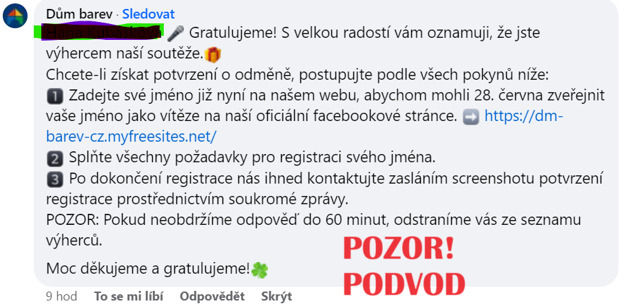 Chceme vás upozornit, že na Facebooku vznikla stránka vydávající se za Dům barev.