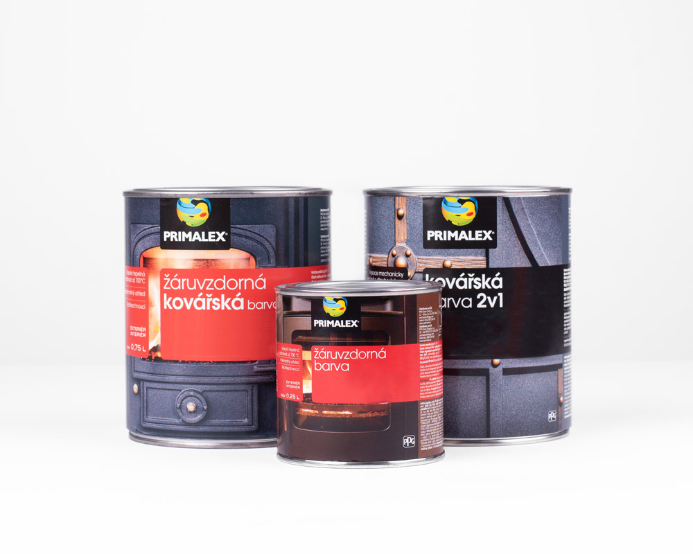Primalex Žáruvzdorná kovářská barva obsahuje navíc hrubší železitou slídu, grafit a antikorozní pigmenty, čímž kovu dodává hluboce matný černý povrch. Je určená pro finální ochranné, ale i dekorativní nátěry ocelových, železných a litinových prvků ve venkovním i vnitřním prostředí.