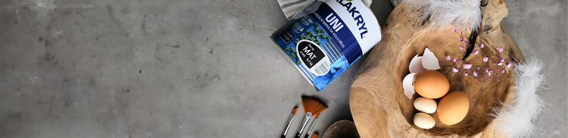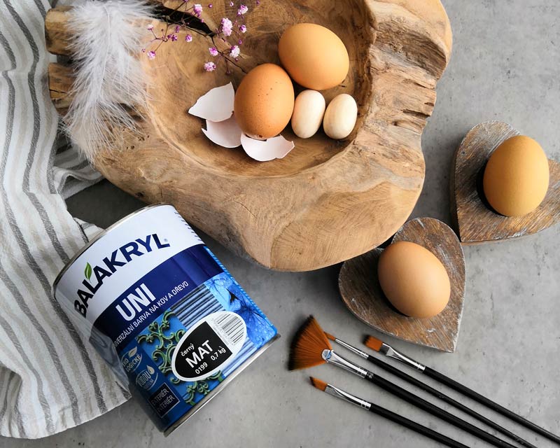 Budete potřebovat: vyfouklá vajíčka, různé štětce na malování (např. úzký nebo vějířovitý) a Balakryl UNI libovolné barvy.