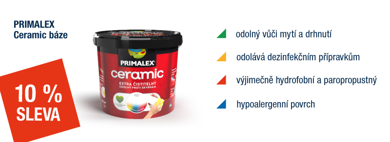 Primalex Ceramic je omyvatelná a čistitelná interiérová barva s vysokou odolností proti znečištění.