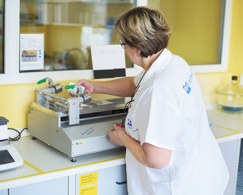 Primalex Plus se stal nejznámějším a nejprodávanějším díky své jedinečné kvalitě. O to, aby to tak zůstalo i nadále, se ve výrobně starají pečlivé laborantky, které provádějí kontrolu vzorků. Je-li vše v pořádku, rozhodnou o uvolnění k plnění do obalů.