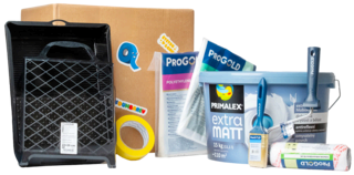 Vše, co potřebujete, v jednom balení. ALLin1 BOX vám dodá vysoce kvalitní barvu PRIMALEX EXTRA MATT 15 kg, ochranné a aplikační příslušenství a jednoduchý návod, díky čemuž zvládnete malování hravě a bez stresu.